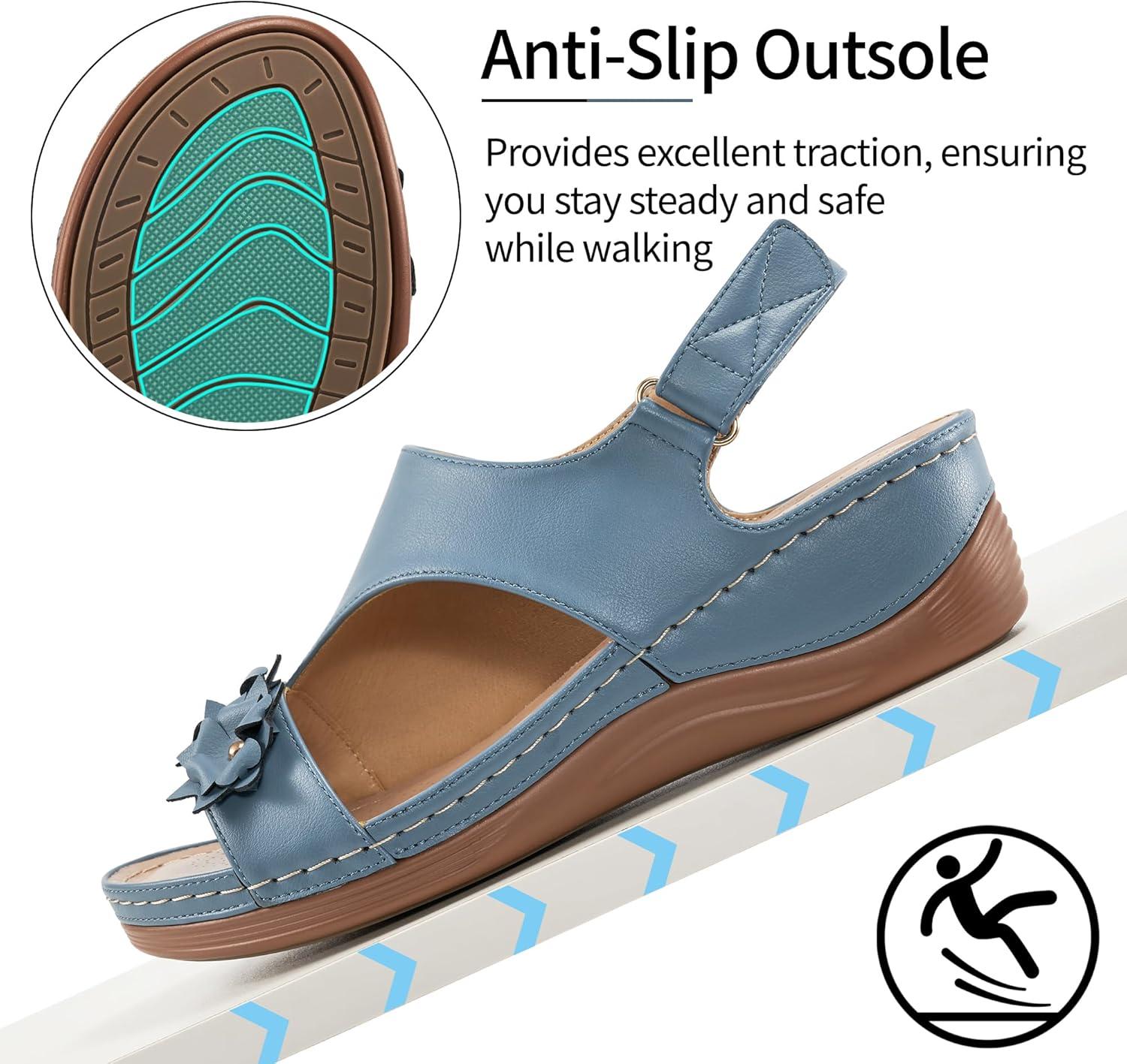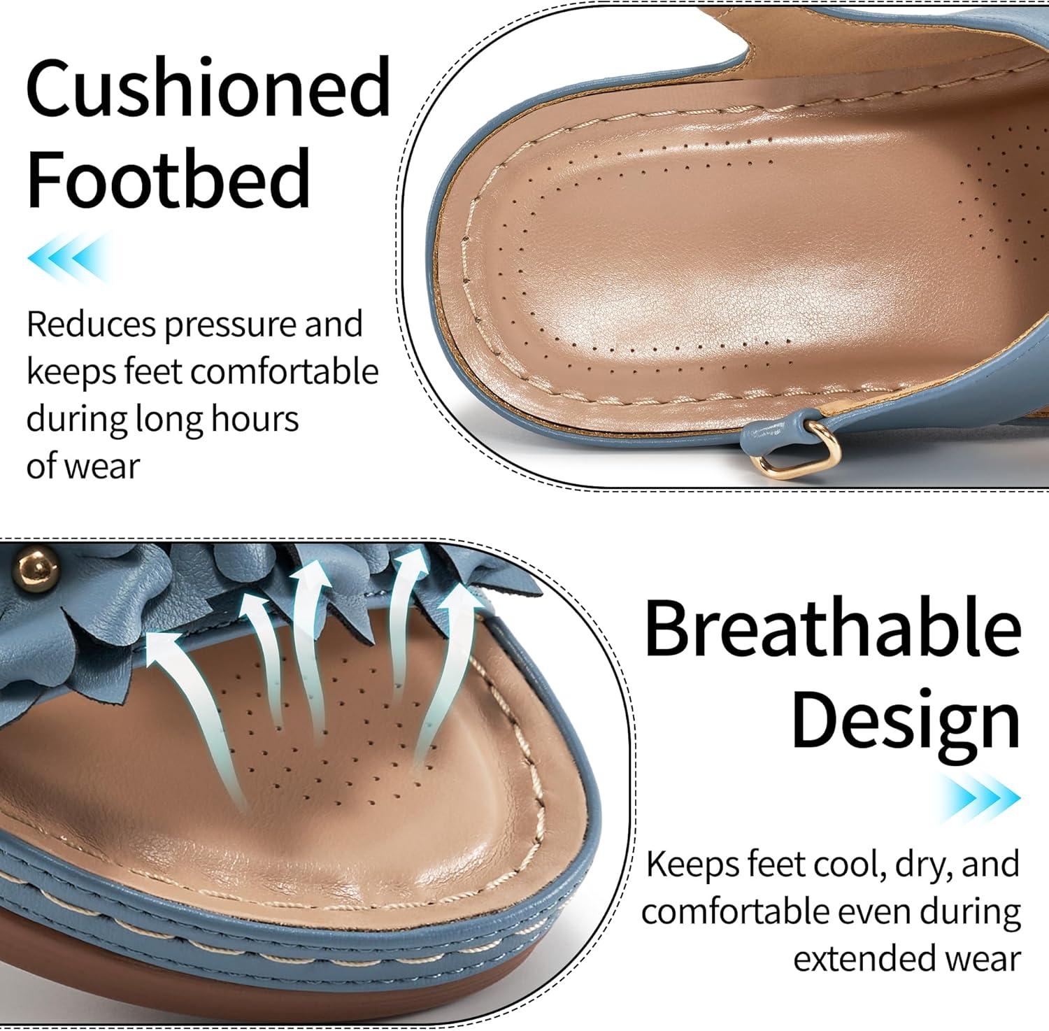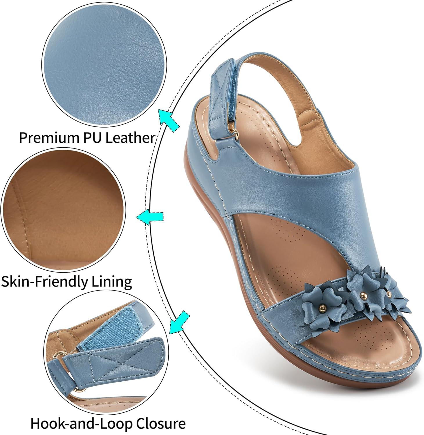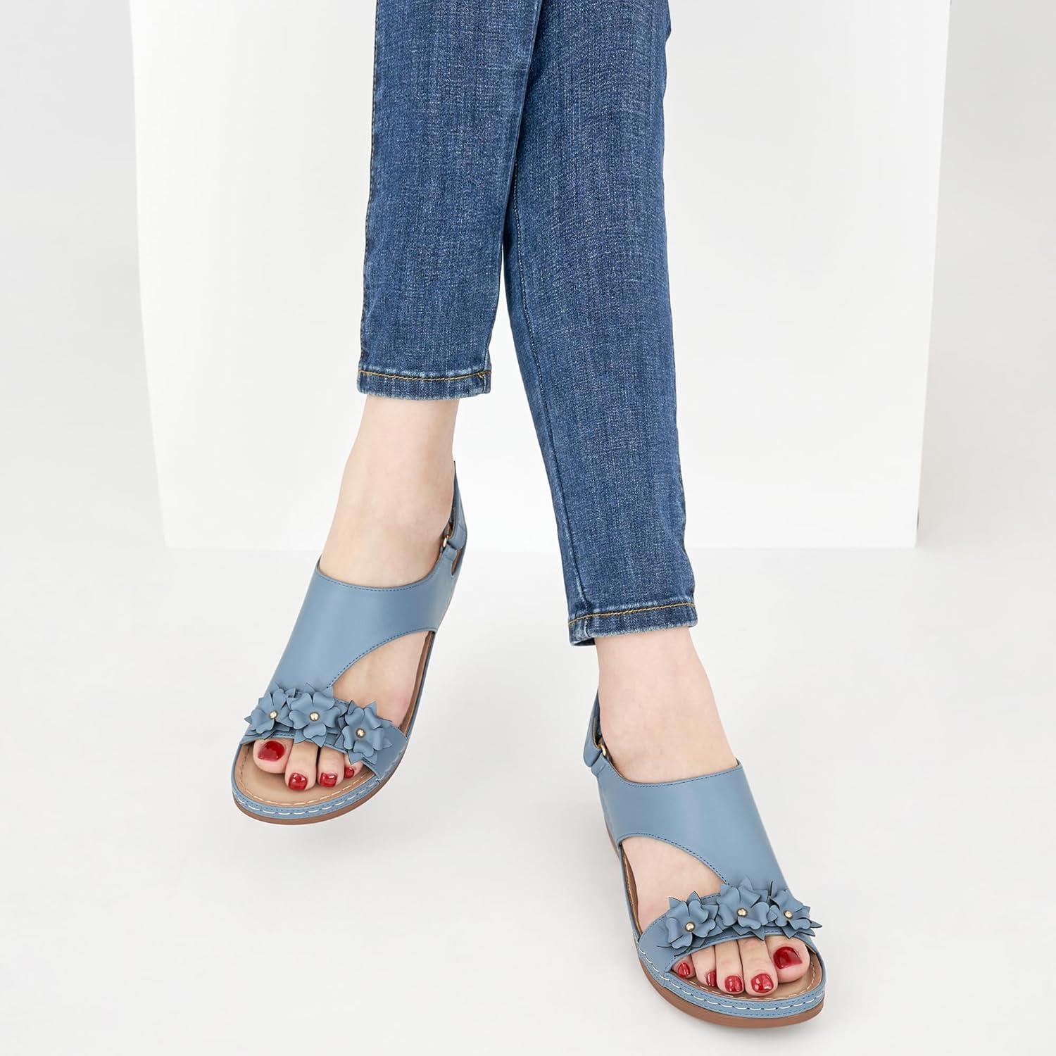 Dressy Wedge Sandals for Women: Comfortable Casual Walking Wedges for Party Vacation Birthday Wedding Indoor for Home House Office(Blue)