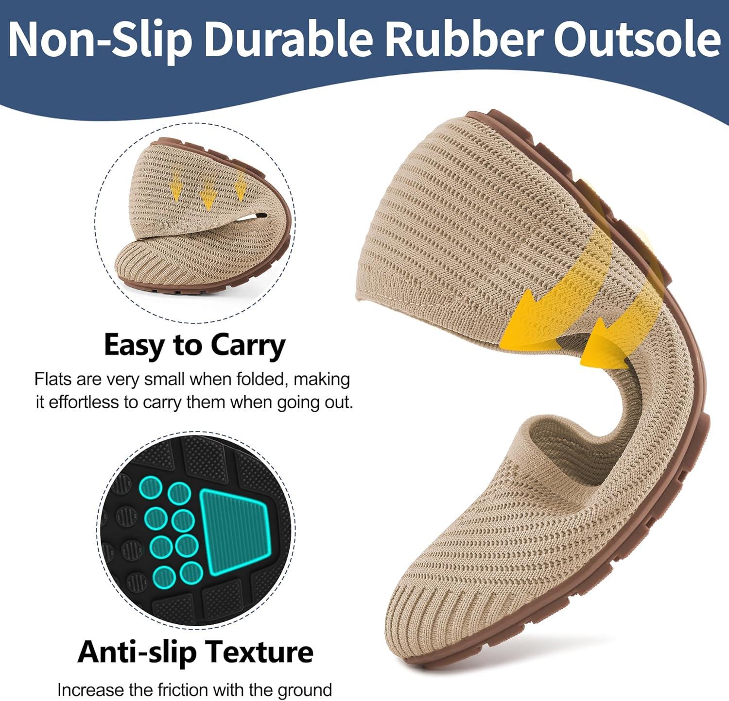 Flats for Women Ballets Shoes: Comfortable Knitted Dressy Work Flats – Ladies Wedding Flat Casual Shoes(Apricot)