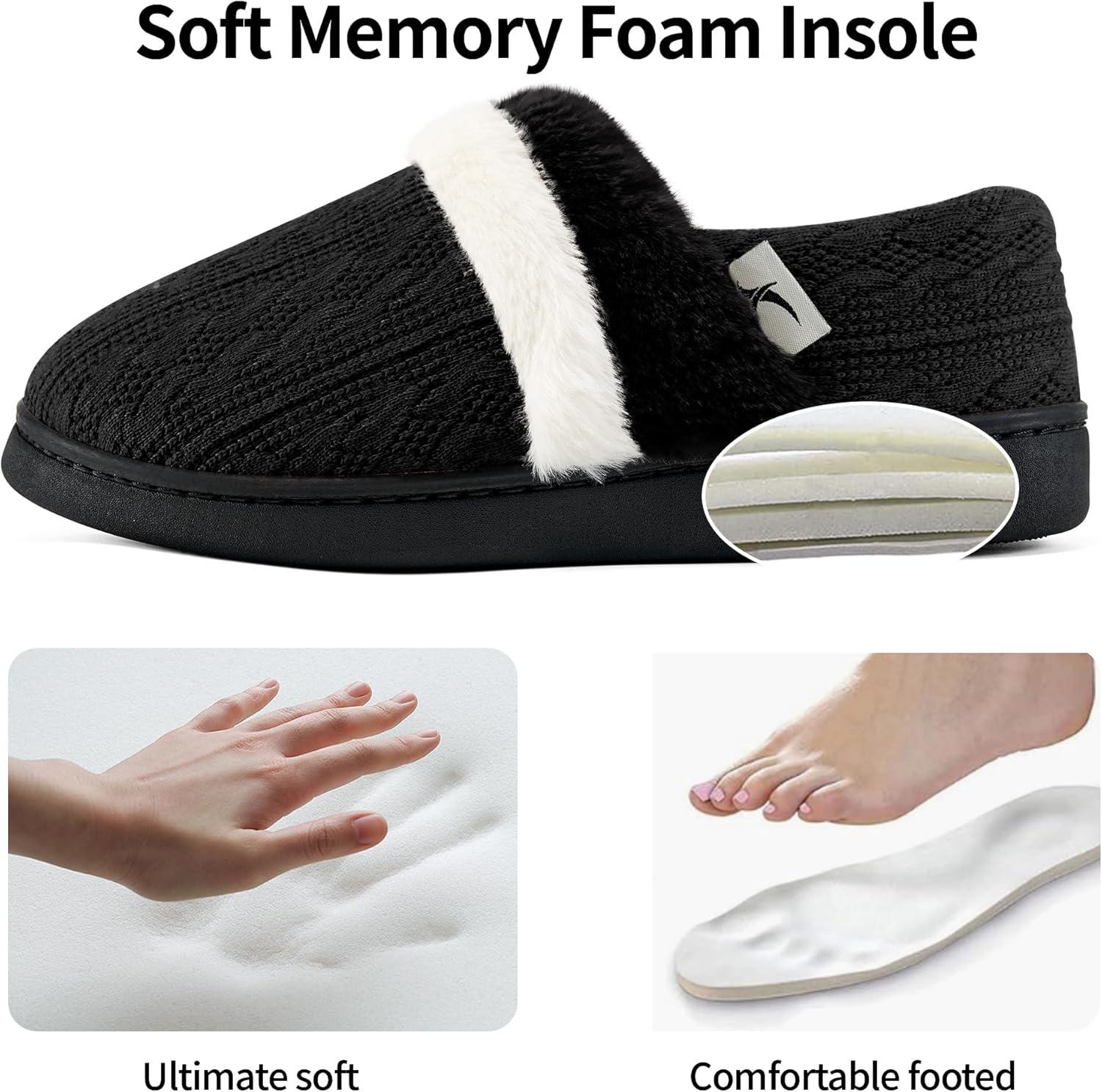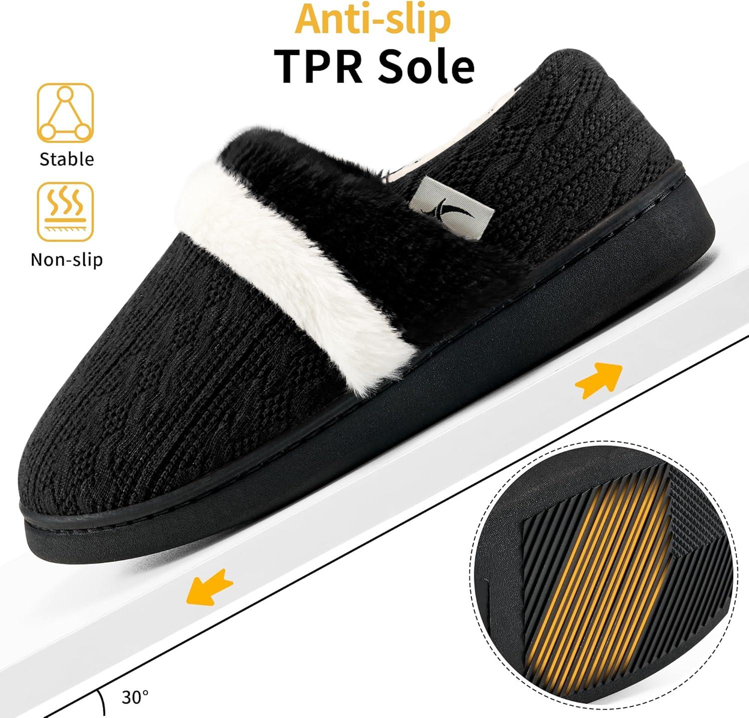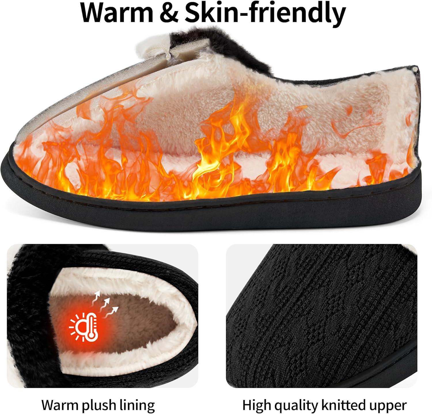 Women Slippers Fuzzy Ladies Shoes: Warm House Slippers for Indoor Outdoor(Black)