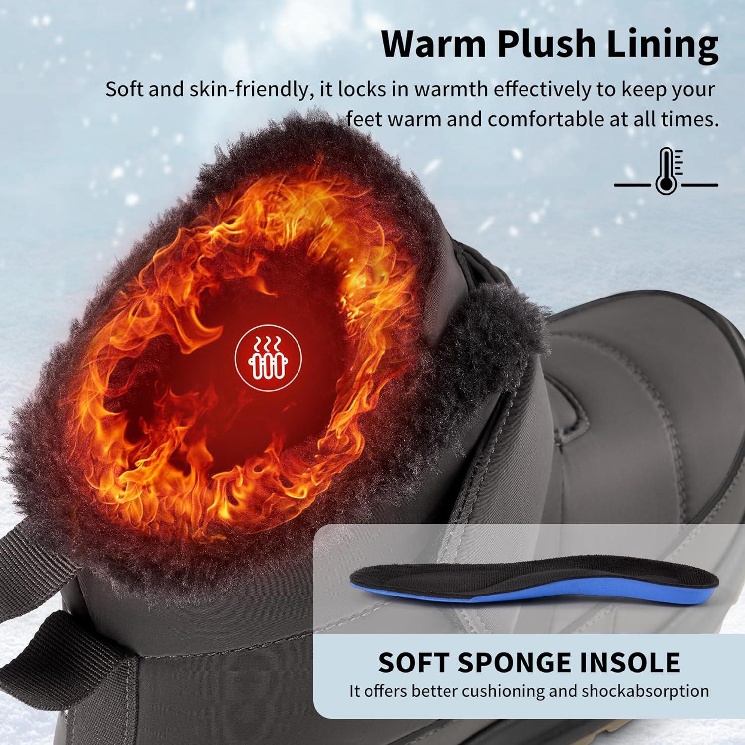 Women Snow Boots Winter: Waterproof Warm Fur Lined Booties Outdoor Walking for Hiking Shopping Travel Indoor for House Home(Grey)