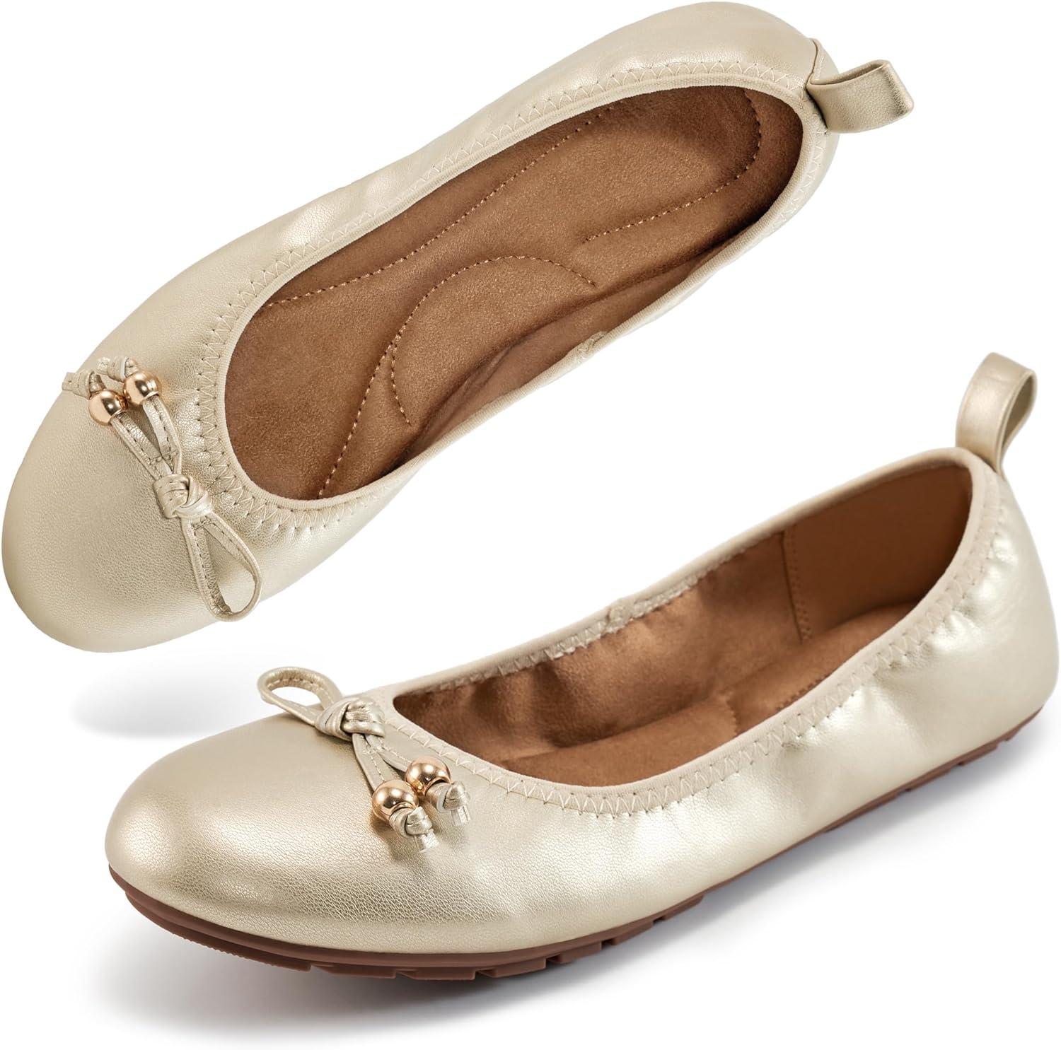 Womens Flats Ballet for Work: Dress Comfortable Walking Flat – Casual Ladies Wedding Shoe(Gold)