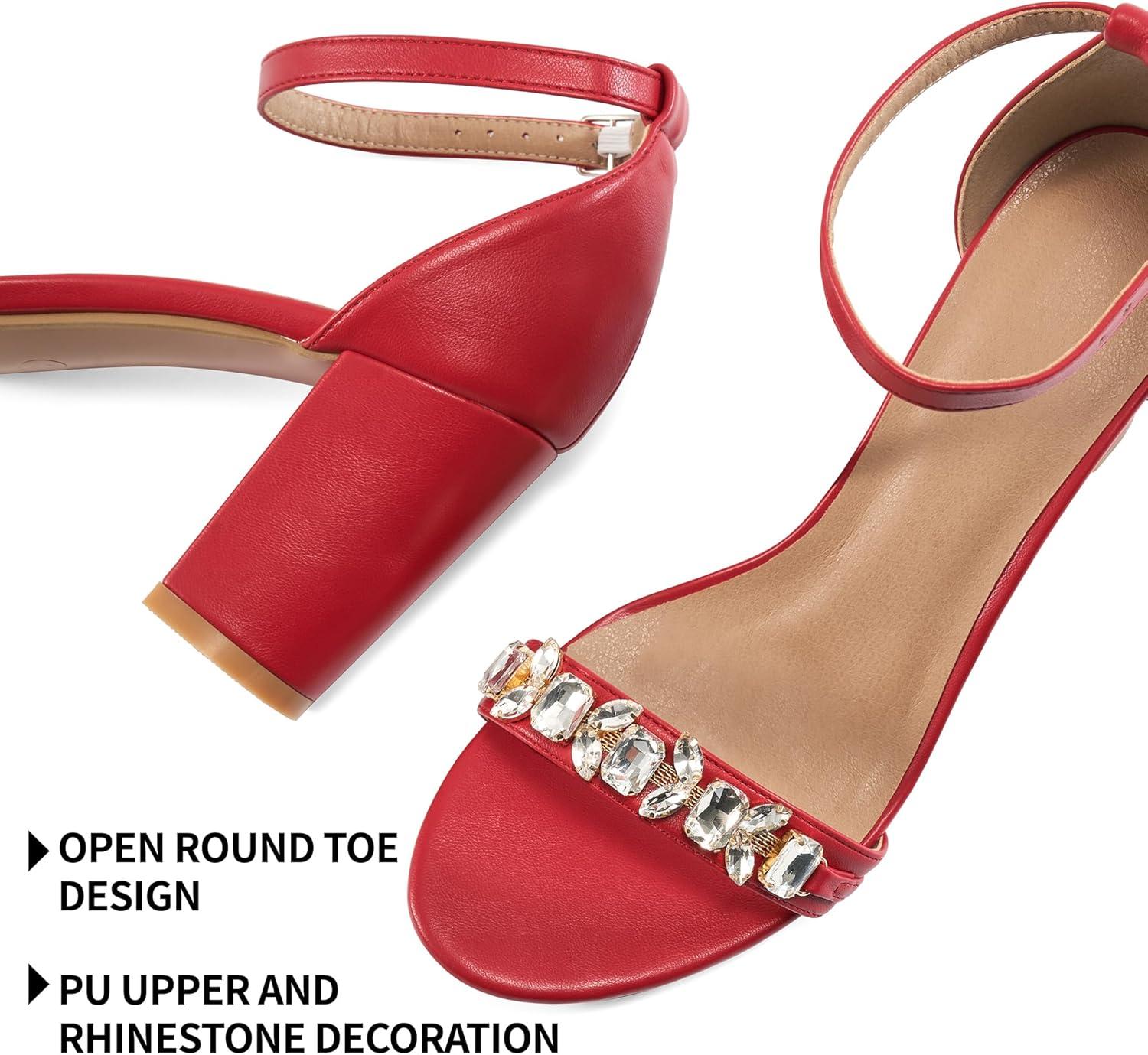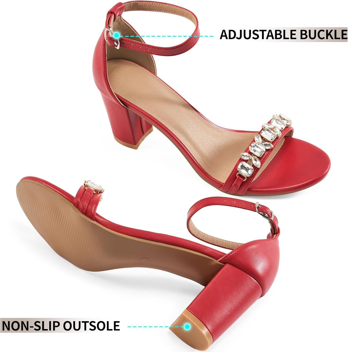 Save big on Womens High Heels Comfortable: Open Toe Ankle Strap Chunk Heeled Sandals – Buckle Rhinestone Heel for Prom Wedding(Red) and accessories during our BOGO sale. Buy one, get one 50% off!