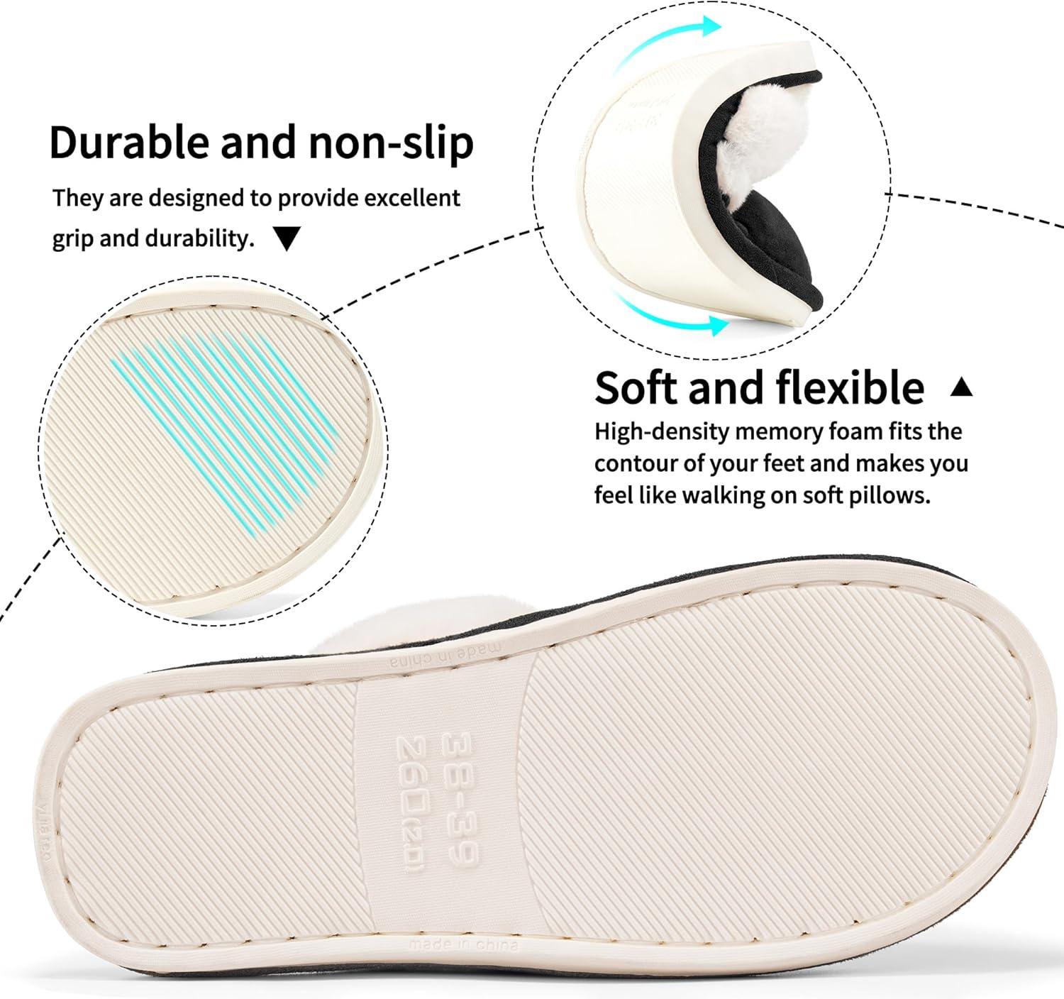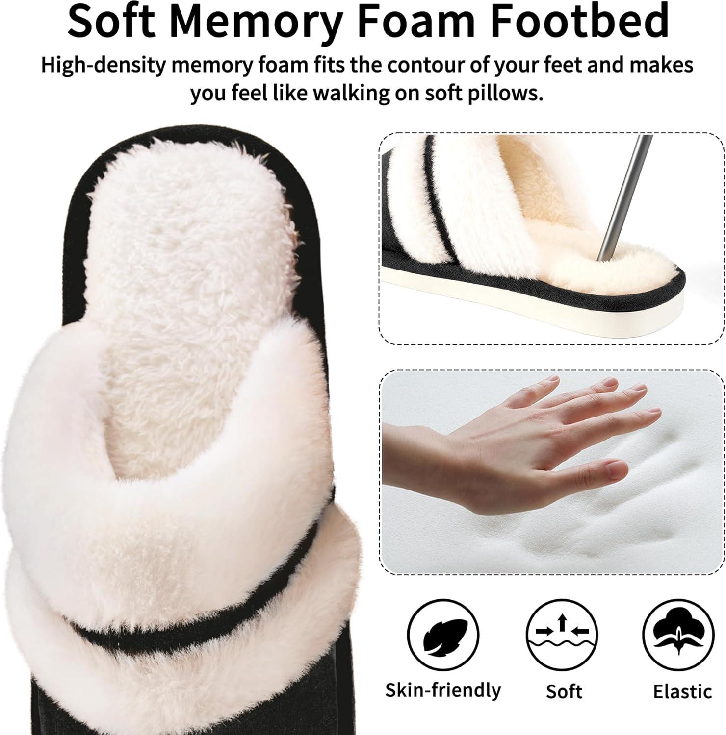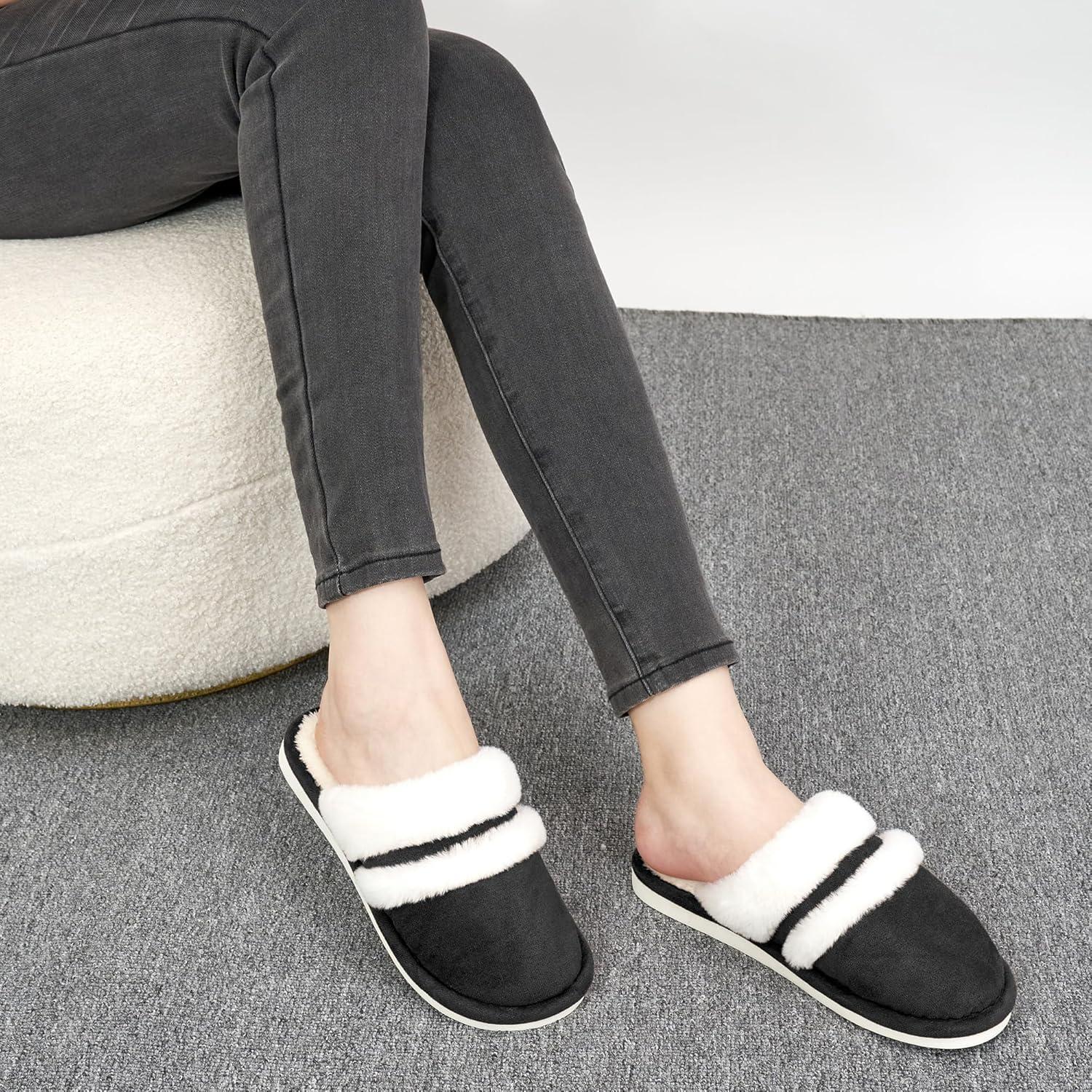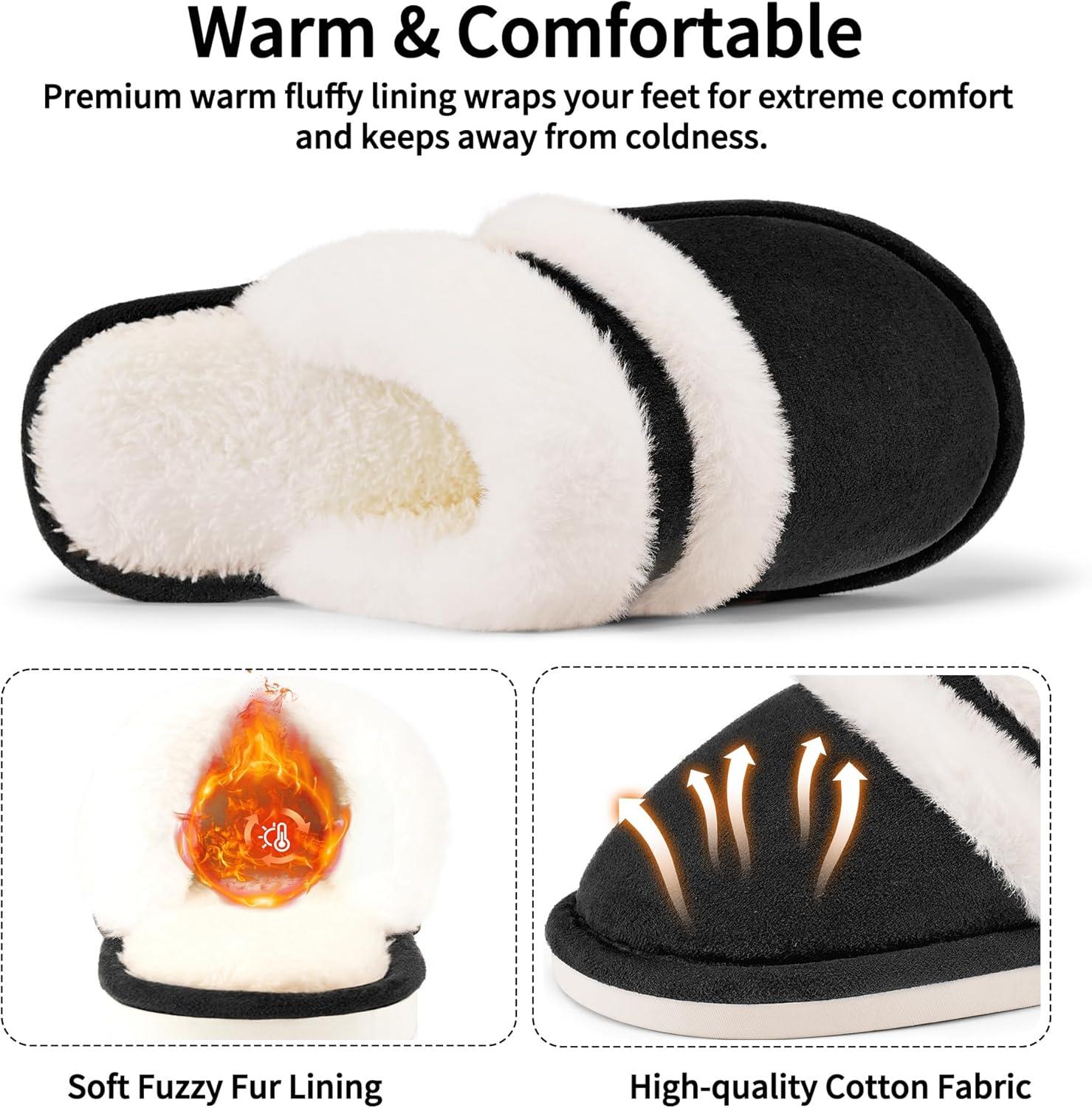 Womens Slippers Fuzzy for Indoor: House Slippers for Bedroom Livingroom – Home Ladies(Black)
