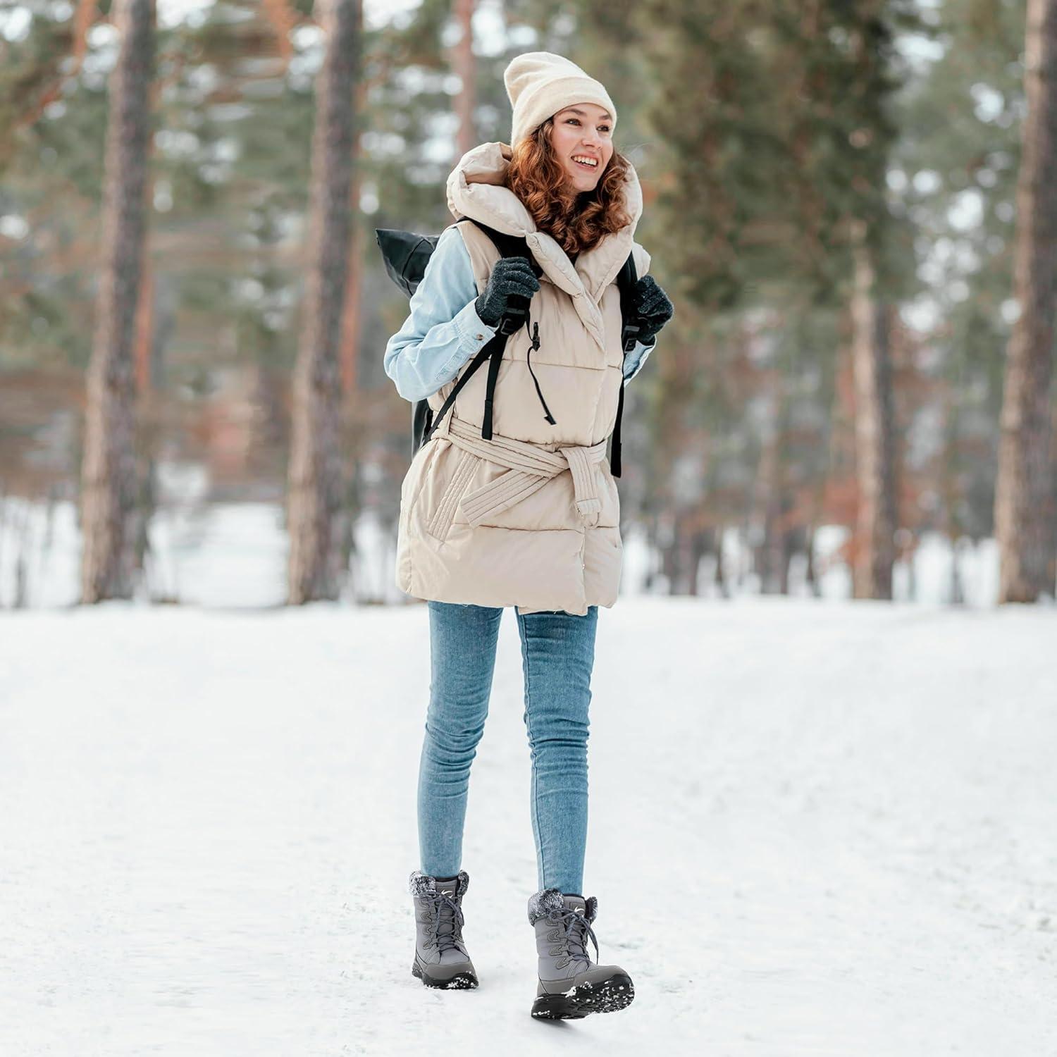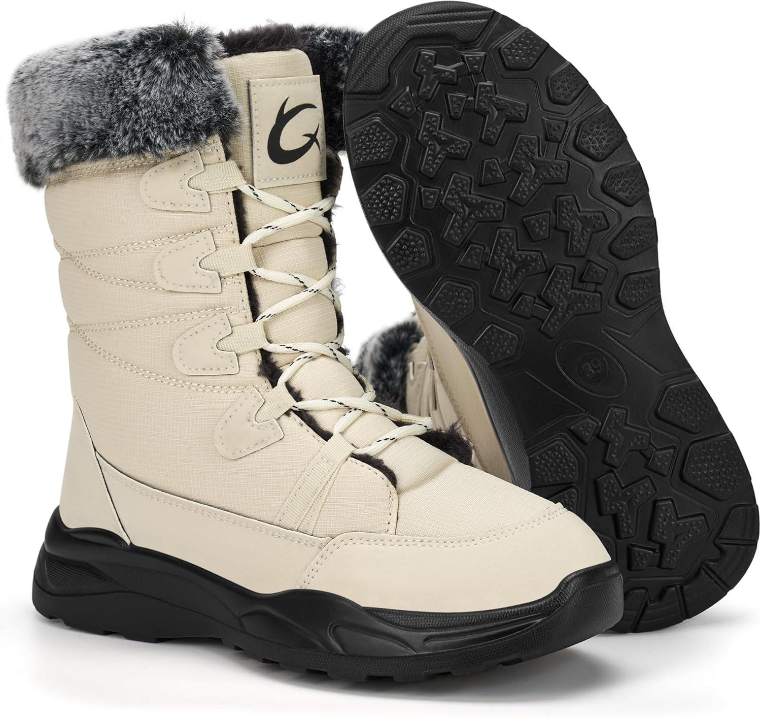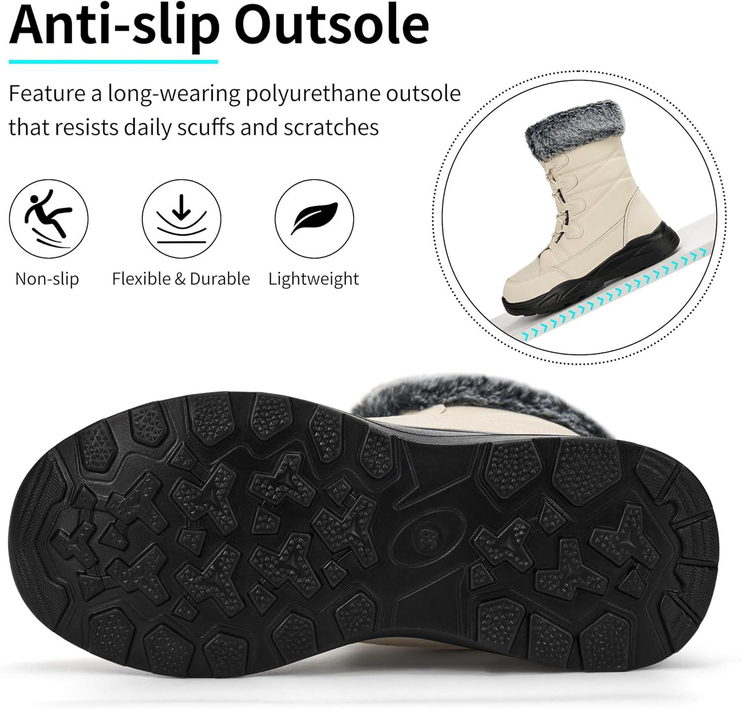 Womens Snow Boots for Winter: Comfortable Warm Fur Lined Anti Slip Mid-calf Booties for Walking(White)